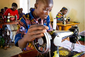ブルキナファソでは、小学校を卒業できず教育を受けられなかった農村部の若者たちは、ごく限られた職業しか選択できません。農村部に残って牧畜や農業の仕事に従事するか、仕事を求めて都市部や近隣国へ出て、行商人や他家の使用人になるかです。ユニセフは、教育の機会を逃してしまった若者たちが将来の選択肢を広げられるように、職業訓練校を支援しています。学校では、フランス語の読み書きや算数を学ぶことに加え、機械、洋裁、溶接、大工、織物、石工の6つのコースから子どもたち自らが選択し、職業訓練を受けることができます。