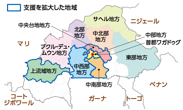 隣国ニジェール、マリと国境を接している地域では、武装勢力により治安状況が悪化し、学校が襲撃の標的にされるケースも発生しています。学校を子どもたちが安全に安心して学べる学習環境にするために、緊急事態時を想定した校内訓練の実施や心理社会的ケアの提供などの「セーフスクール」プログラムを展開するなど、学校の安全を確保するための取り組みを加速させています。
