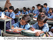 「勉強して、仕事をして、お父さんとお母さんを助けたいの」と話すのは5年生のモジナちゃん。貧しい人が多く暮らすナルシンディ郊外。小さな掘っ立て小屋が密集する、経済的に苦しい地域です。最近、こうした地域でも教育が広まりを見せています。テレビアニメやイベントを通して男女平等の意識を高める、質の高い教育を広める…ユニセフは政府と連携し地道な努力を続けてきました。今では、学校に通う機会を奪われがちだった女子が男子の就学率を上回るところまで出てきています。とはいえ、貧困が子どもたちの教育の機会を奪うケースはいまだに多く、経済的な理由から子どもを退学させ、結婚させる親も少なくありません。不利な状況にある少数民族や貧困地域の子どもたちの就学がこれからの大きな課題です。ユニセフの支援により、現状をより正確に把握する大規模な調査活動も実施されています。 |