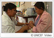 約250万人の子どもが貧困の中で暮らすボリビア。乳児の死因の3分の1は、衛生施設の不足に起因する下痢による脱水症状です。医者のいない地域も多く、ユラリアさんは4人の子どもの予防接種や下痢の治療のために、何キロも歩いて最寄の病院に通います。ですが、ユニセフが支援する公的な健康保険制度のおかげで、少なくとも治療やケアにかかる費用を払う必要はありません。新しい制度のおかげで、医師は5歳未満の子どもや妊娠中の母親にどのような治療やケアでも行うことができるようになりました。「ここでの妊産婦死亡率はほぼゼロです。制度の導入後、ここ4年で変化が起こりました」と、サン・アスンシオン病院のトレド医師は話します。医療ケアによって子どもの死亡率は下がっています。今後は、下痢や肺炎、栄養不良など病気そのものの原因を減らす努力が続きます。 |