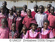 長引く失業問題やHIVの打撃を受けているジンバブエ。そのうえ、インフレによる授業料の値上りが子どもたちに立ちはだかっています。この問題に立ち向かおうと、15地域で1800人以上の女性たちが子どもたちの学費を確保しようと、ユニセフの支援を受け、様々な取り組みをはじめています。例えば、野菜を栽培して売り、子どもたちの学費を支えるグループも。メンバーの72歳のおばあさんも自分は学校へ行けなかったけれど、孫たちには教育を受けさせたいと一生懸命です。12歳のポーリーンさんは、いつも男兄弟が優先されてきたけれど、今度は自分の学費も援助される、と大変な喜びよう。ユニセフ・ジンバブエ代表のカヴィシュ氏は、「女子も、孤児も、すべての子どもにとって学校へ通うことが平等、尊厳、前進への必須条件です」と話します。 |