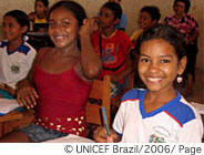 ブラジル、アマゾン地域最大のパラ州。アマゾンはブラジルで孤立した地域です。学校も熱帯雨林に囲まれた川の支流付近に位置しています。パラ州で学校に通う子どもは68万人。しかし先生の数は足りず、一人の先生がさまざまな学年の子どもたちを一緒に教えています。10歳のナヤネちゃんは、「今年は歴史の授業がないんです」とさみしそう。学校設備が整わないうえ、授業は気温も湿度も高い時間帯。「たまに授業に飽きちゃうの」という子どもがいるのも仕方ありません。いま、この地域ではユニセフの支援のもと、教育の質を向上させるプロジェクトが進行中です。プロジェクトでは、地方の学校への財源を増やし、教員を養成し、より地域の現実を反映した教材や充実したカリキュラムを開発するといった取り組みが続いています。どの子どもも同じように質の高い教育が受けられるように…。ユニセフが目標とすることのひとつです。 |