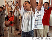 3年前に職業訓練所に入った14歳のヘクマット君。かつてこの施設は罪を犯した子どもたちの収容所でした。彼を養えなくなった母親はせめて教育を受けさせたいと彼をここに送りました。実際、施設で暮らす子どもの大半が貧困のなかにある子どもたちだったのです。しかし、ここでは適切な教育は行われませんでした。「教育を受けるために来たのに、テレビばかり見ていたんだ」とヘクマット君。変化が訪れたのは2004年。ユニセフの支援を受け、施設は収容型から立ち寄り型へと変わり、すべての子どもたちに開かれました。コンピュータや音楽、語学などバラエティに富んだプログラムを提供するようになった施設は、多目的の教育センターに様変わりし、有能な人材を育てるようになりました。当初はその効果を疑っていた人びとも、今ではいかに施設が役立っているかを認めています。「家族との暮らしに代わる施設ケアはありません」とユニセフ担当官ライト氏は話します。 |