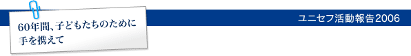 2006年、ユニセフは創設60周年を迎えました。 1946年冬、戦後のヨーロッパの子どもたちに食料や衣類などの緊急支援をおこなうために、国連によって創設されてから60年、今では世界150以上の国と地域※で支援活動が実施されています。(※2006年10月現在)