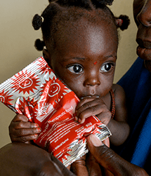 毎月、重度の栄養不良の子どもを治療する高エネルギー食14袋(4日分)に。