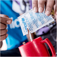 毎月、汚れた水を安全な飲み水にする浄水剤2,500錠(12,500リットル分)、あるいは下痢による脱水症を防ぐORS(経口補水塩)142袋分に変わります。