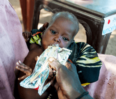 重度栄養不良の子どもの治療のために特別に開発された栄養治療食は、高いカロリーで豊富な栄養素が含まれています。