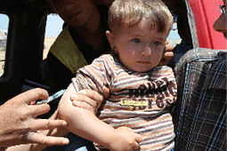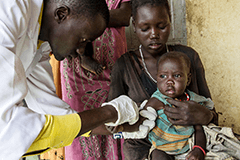 生後7ヵ月のウマラが、避難民キャンプの栄養センターに運ばれてきました。