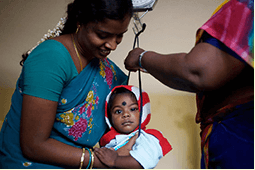 母親がウマラを抱いて栄養センターに駆けつけたとき、ウマラはもう何日も食事らしい食事をとれず、下痢も続いて日に日に衰弱が進んでいました。体重計が指した数字は4.2kg。本来あるべき体重の約半分です。
