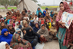 ユニセフは、国内13県で、母親支援グループを設立しました。支援グループで訓練を受けたボランティアは、地元の看護師と一緒に幼い子どものいる家庭を訪問し、子どもの発育観察と栄養のアドバイスするほか、地元の食材を使ったバランスの良い食事の作り方の講習会を開いています。