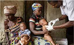 村々の広場などで年に2回開催する「予防接種デー」では、予防接種と同時にビタミンAの投与やマラリア予防蚊帳の配付、栄養検査なども行なっています。