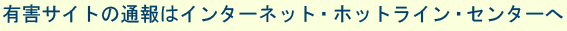 インターネットホットライン・センターでは、インターネット上における子どもポルノをはじめ、犯罪行為を引き起こす危険のある情報に関して、広くインターネット利用者の協力を得て、違法・有害情報の根絶に取り組んでいます。 |