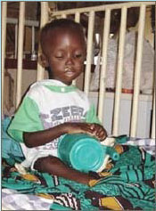 この病棟に連れてこられる子どもたちの多くが、下痢やマラリア、貧血を患っているといいます。ひとつの病棟には平均していつも16〜20人の子どもが入院しており、同じような病棟が他に3つ、それから、栄養改善センターがあり、そこでもいつも20人ほどの子どもたちが治療を受けているそうです。