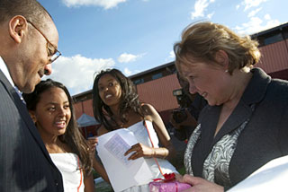 | エチオピアのプランピーナッツ工場のオープニングに立ち会ったユニセフ事務局長ア ン・ベネマン |