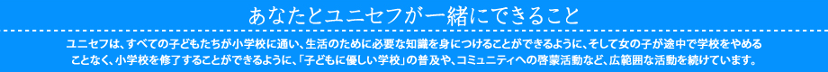 キャンペーンTOPページへ » あなたとユニセフが一緒にできること | ||||||