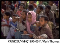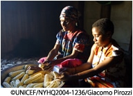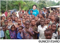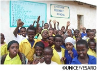 ユニセフは、教育の質を少しでも良くするため、教材の提供や先生への研修などを行っています。同時に村の集会所などで、 子どもたちが家事をしながらでも通える1日3時間程度の非正規学校を支援しています。女子が通いやすいよう、先生には 現地の女性を抜てきします。コミュニティ内で比較的高い教育を受けている女性に即席でトレーニングを施し、先生になって もらうのです。女性を先生に起用すると女子が学校に通いやすくなります。 また、ほとんどの女の子にとって、社会で活躍する女性を目にするはじめての機会となります。 学校に通いだした女子が「先生になりたい」と言うのを聞くたび、チャンスを広げてあげることの大切さを痛感します。