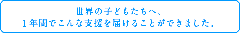 世界中で、子どもの免疫力を高めるビタミンA 5億1,400万錠、下痢による脱水症を治療するORS(経口補水塩)7,430万袋、マラリア蚊を防ぐ殺虫処理済みの蚊帳2,640万張りなど、幼い命を病気から守る多くの支援物資を調達しました。