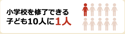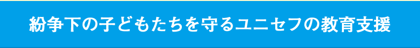 小学校に通うことができない子どもの数は、2000年には世界で1億人でしたが、2013年には5,900万人にまで減っています。しかし、こうした改善の一方で、子どもたちの教育を阻む大きな障壁となってきているのが「紛争」です。現在、初等教育を受けられない子どもたちのうち、およそ50%が紛争の影響下で暮らしており、その割合は年々増大しています。