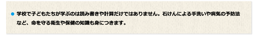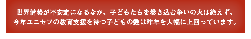 しかし、教育も命を守る支援と等しく、子どもたちに不可欠なのです。