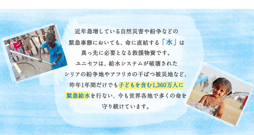 ユニセフ(国際連合児童基金)とユニセフ協会(国内委員会)は、世界190以上の国と地域で、子どもたちの命と健康、権利を守るために活動しています。