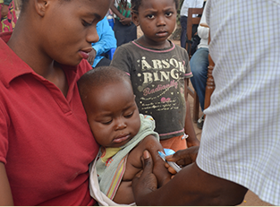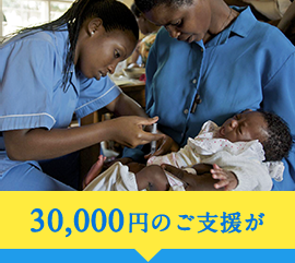 また、予防接種の場は、子どもの命を守るさまざまな活動の絶好の機会です。接種を終えた子どもたちに、免疫力を高めるビタミンAを投与したり、マラリア予防用の蚊帳を配ったり、健康診断や栄養状態の検査なども行なっています。