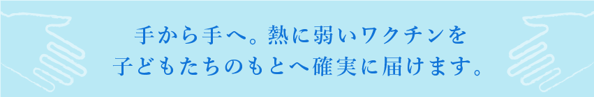 ワクチンを届けるためには、コールドチェーンとよばれる保冷システムが不可欠です。ワクチンは熱に弱く、一定の温度を超えると使えなくなってしまいます。そのため、都市部の病院から冷蔵庫ごと各地の保健センターに届け、運搬用の箱に詰め替えて、保冷剤を交換しながら目的地まで運んでいきます。 このような支援活動を可能にしているのは、ユニセフが半世紀以上にわたって築いてきた保健拠点や保健員のネットワーク、そしてなにより地域の人々の「子どもを守る」という強い意志です。