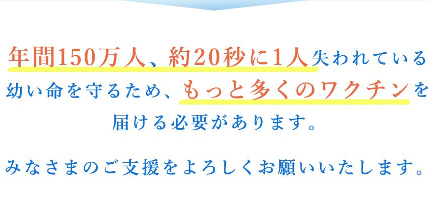 しかし世界には、命を守るために必要な予防接種を受けることができない子どもたちが大勢います。