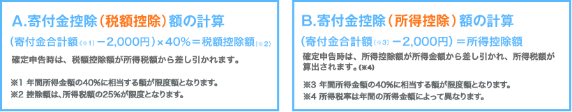 当協会への寄付金は、従来の「所得控除」に加えて「税額控除」のどちらか有利な方式を選択いただくことができます。