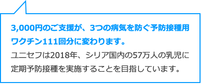 3つの病気から子どもの命を守る予防接種用ワクチン111回分に変わります。