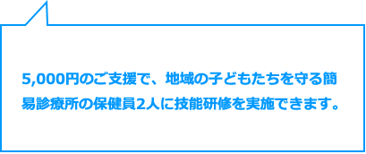 村々の簡易診療所で働く保健員2人に技能研修を実施できます。