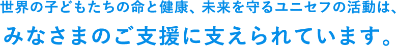 ユニセフ(国際連合児童基金)とユニセフ協会(国内委員会)は、世界190の国と地域で、子どもたちの命と健康、権利を守るために活動しています。