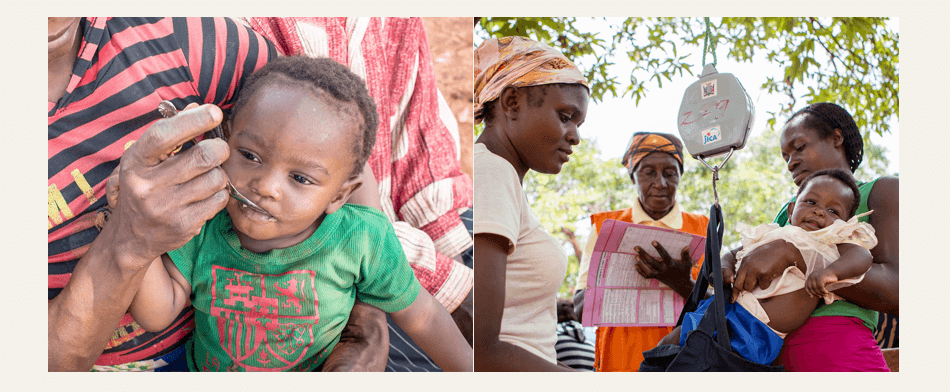 ユニセフの支援によって、たとえばアフリカ南部のマラウイでは、1万人を超える地元出身の保健員が誕生し、アクセスの難しい4,300の村で簡易診療所を開設、予防接種や子ども健康デーの実施などさまざまな支援を組み合わせた結果、子どもたちの生存率が十数年で7割近くも向上しました。