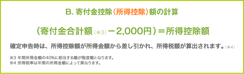 ★ A(税額控除)かB(所得控除)のどちらか有利な方を選択し、所得税の控除をうけられます。どちらも確定申告が必要です。