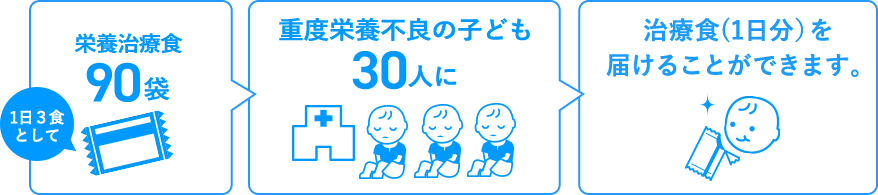 深刻な栄養不良から子どもの命を救う栄養治療食90袋に変わります。