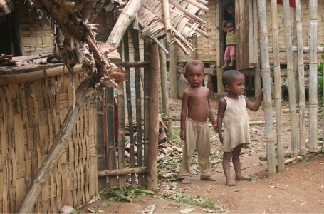 乳幼児の死亡率は高く、年間8万2000人、毎日225人の5歳未満児が死亡しています。その主な原因は肺炎やマラリア、それに不衛生な環境や汚い水が原因で発症する下痢性の病気などです。そしてそこには、栄養不良が大きく関わっています。 マダガスカルの農村部では、みんなその日その日を精一杯生き延びている状況です。作物の収穫期以外は何ヶ月も薄いおかゆを夜一回すするだけ、あるいは乾燥地帯では食べるものが野生のサボテンしかないこともめずらしくなく、発育不良の子どもがたくさんいます。