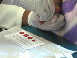 この検査方法では、赤ちゃんの血液を数的検査用紙の上に垂らします。血液サンプルの温度を一定に保つための氷も保冷機材もいりません。乾燥血液サンプルは数マイル離れた検査所へ送り届けられ、遺伝子検査が行われます。理論的には、分析を開始してから16時間以内に結果が判明します。検査用紙は溶解処理され、サンプルを再検査することも可能です。
