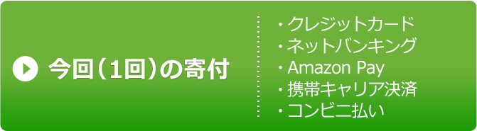 1回(都度)のご寄付は、当協会ホームページからクレジットカード、インターネットバンキング、Amazon Pay、携帯キャリア決済、コンビニエンスストアを通じてご寄付をお受けしております。