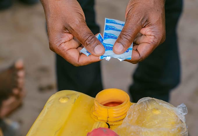 幼い子どもは下痢や脱水症で命を落としやすいため給水支援や浄水剤の配付