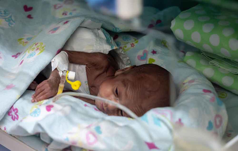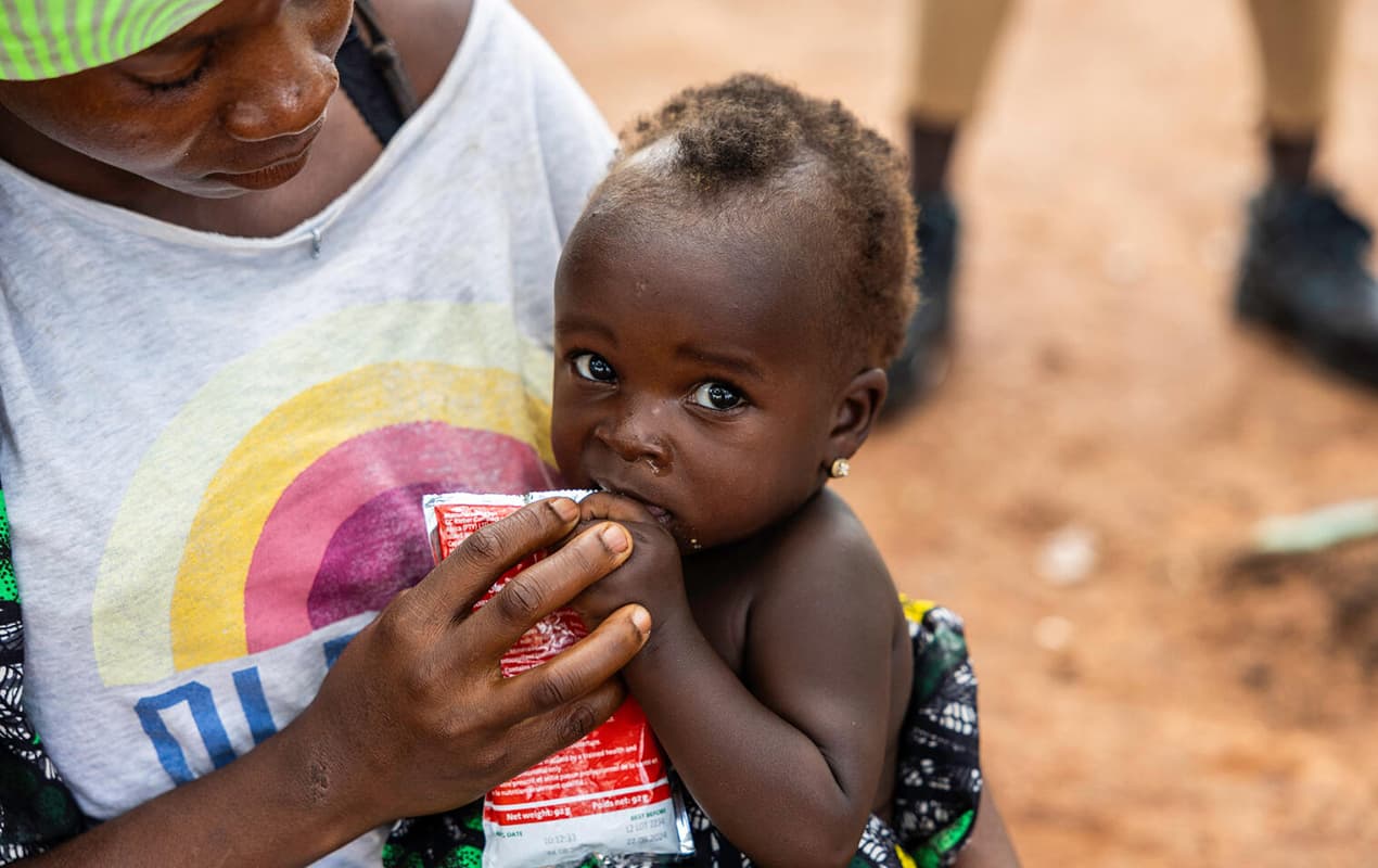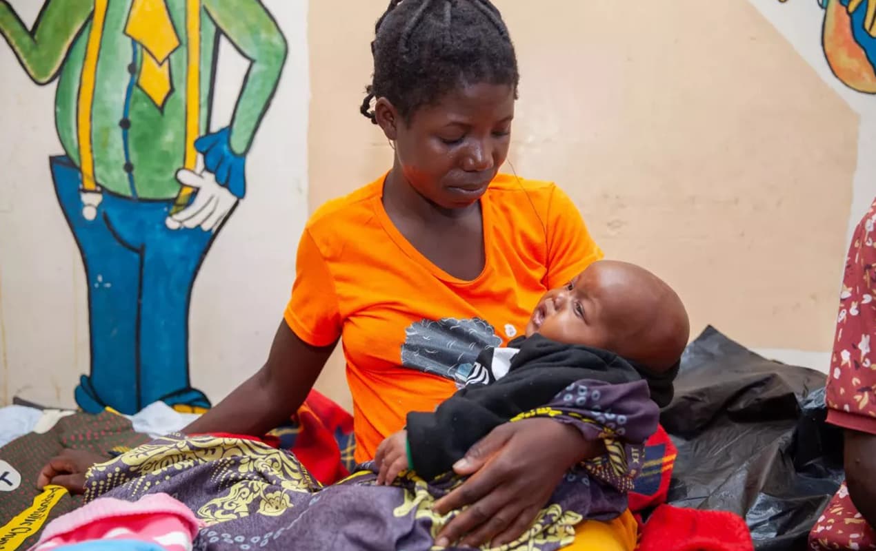 サイクロンの被害が相次ぐモザンビークで栄養治療を受ける赤ちゃん