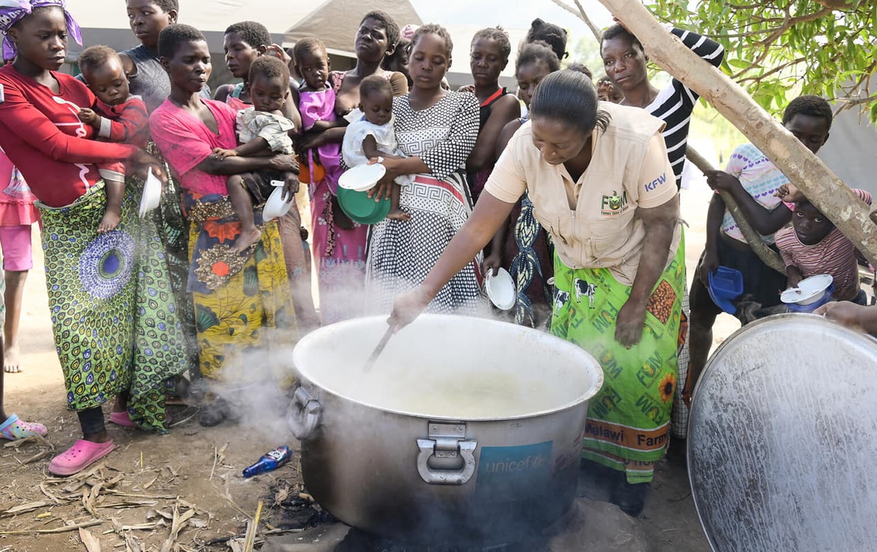 被災した子どもたちにおかゆを配るマラウイの母親ケアチーム