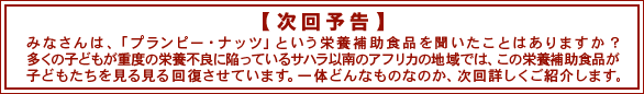 開発や経済のグローバル化は確実に起こっています。子どもの健康や栄養を考えるということが、むしろ家族や村の力を育てる一つの窓口になる・・・かな? 長い目で見た時にそうであればいいな・・・、 なんてつらつらと考えたりしますが、どうでしょうか。