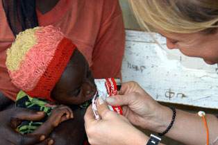 しかし、プランピー・ナッツは、水もいらないし、監視する人も必要ないので、「家」で処方することができます。栄養補給センターや保健センターが遠くても、「家」や「コミュニティ」で、(瀕死の状態になる前に)手を打つことができるのです。「コミュニティ」で「何とかできる」。これが、最近の支援の方法となっています。どこかにでかけなくても、コミュニティの中で、うまく問題解決できれば、それだけ子どもたちの命は助かるのです。