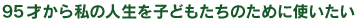2000年にね、子どもたちの良きモデルとなるべく、「新老人の会」というのを立ち上げたんです。その活動の中で子どもたちへの思いがどんどん膨らんできて、「95才からの人生を子どもたちのために使いたい。」と思って大使を引き受けました。970万人以上の子どもが5才まで生きられない恐るべき現状を、実際にネパールやガボンで目の当たりにして、私の人生は今9回表だけれど、子どもたちのために15回くらいまで延長戦で頑張ろうと思ったんです。