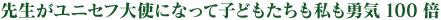 日本ユニセフ協会大使として、子どもたちのために頑張りますよ。ますます睡眠時間が短くなりますが、地震が来ても起きないぐらいの深い眠りで乗り切りますよ。こんなオーバーワークは若い人には無理。95才まで長生きしないとできないですね。(笑)