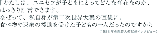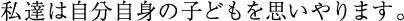 何かの危機に直面したときも、事故や病気に見舞われたときも。そして、回復するまでの長い時間もケアし続けるものです。もし、私達が自分の子どもたちに対してできることならば、ここで何も言わず耐え忍んでいる子どもたちに対しても同じことをできるはずだと信じています。 (1988年 エチオピア)