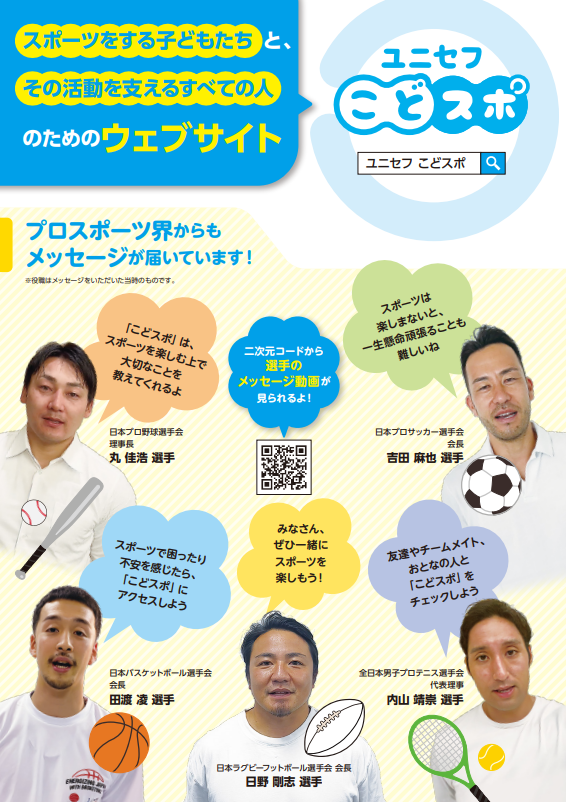 令和6年度は、夏季・冬季のすべて大会参加者にウェブサイト「ユニセフこどスポ」のチラシを配布していただきました。