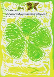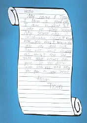 「きぼう、ゆめ、ありがとう」と書かれたお手紙。 A letter with message words of Hope, Dream, and Thank you.