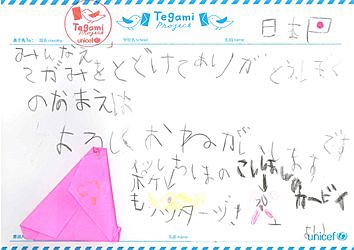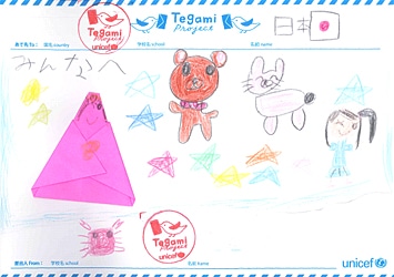 みんなへ てがみをとどけてくれてありがとう。 Dear friends, thank you for sending us letters.