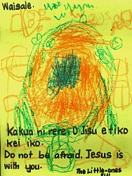 心配しないでね。神さまがみんなを守ってくれるよ。 Do not be afraid. Jesus is with you.