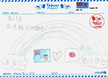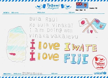 岩手、そしてフィジーのことが大好きと書かれたお手紙。 Showing the love for Fiji and Iwate